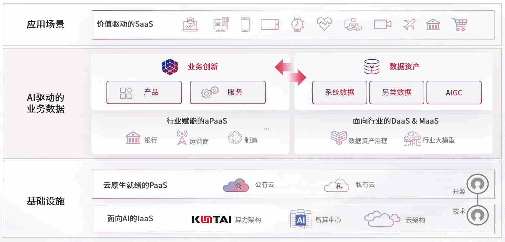 数字时代,,,围绕企业数字化转型的关键要素,,,,z6com尊龙数码开创性的提出数云融合战略和技术体系框架,,,着力在云原生、、数字原生、、AI原生和信创产业上架构产品和服务能力,,,,为处在不同数字化转型阶段的快消零售、、、汽车、、、、金融、、、医疗、、、政企、、、、教育、、运营商等行业客户提供泛在的敏捷IT能力和融合的数据驱动能力,,,,构建跨界融合创新的数字业务场景和新业务模式,,,,助力企业级客户建立面向未来的核心能力和竞争优势,,全面推动社会的数字化、、智能化转型升级。。
